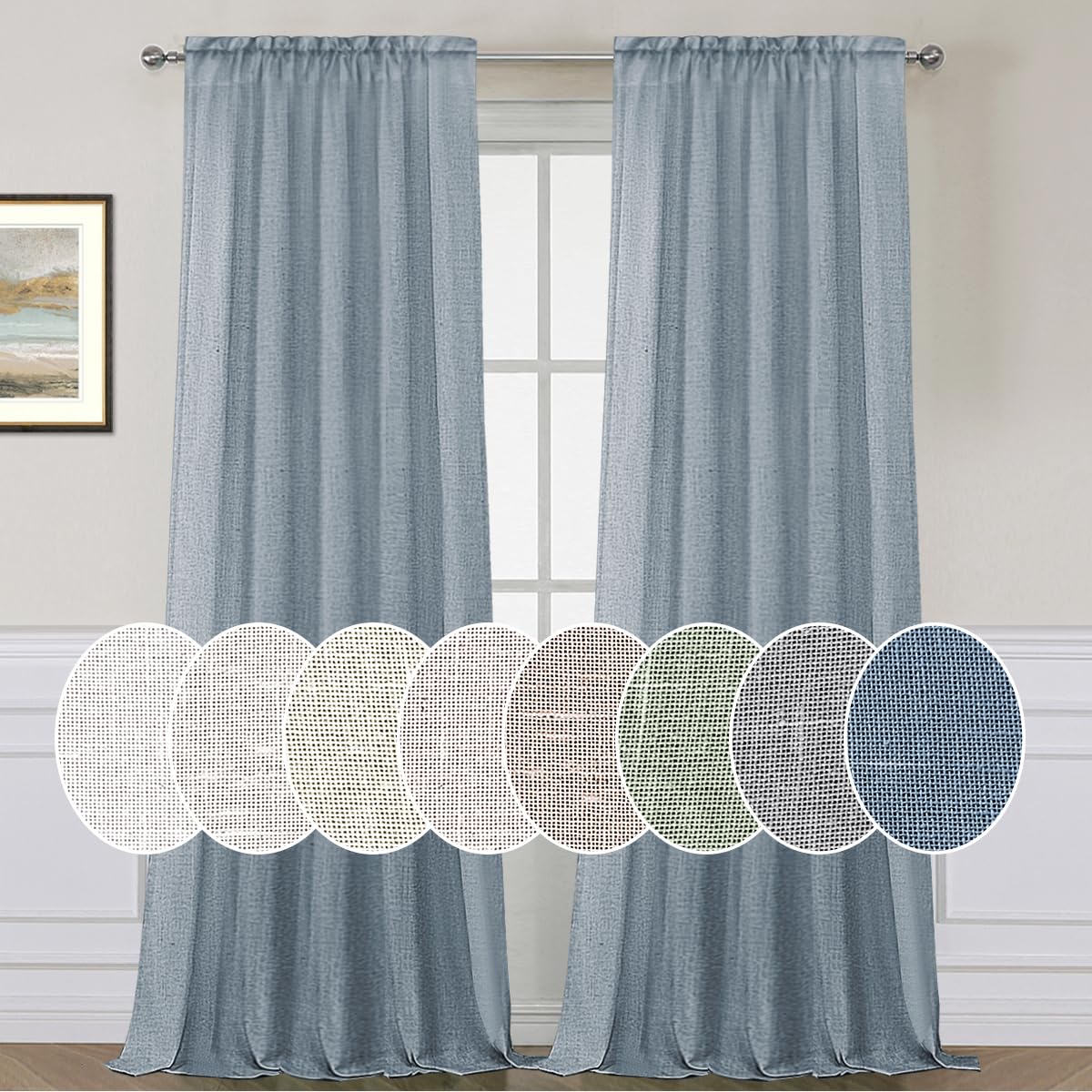 Rooney 2 Panels Natural Linen Textured Window Curtains Set Rod Pocket Semi Sheer Light Linen Blue Curtains Hang a pair of sheer linen curtain panels from a metal curtain rod. These elegant window treatments add a soothing touch to any room,. colorbird farmhouse blue linen curtains for living room, 84 inch length boho striped room darkening drapes, 2 panels sets. find the perfect pair of blue curtains right here. check out our blue linen. Linen Blue Curtains.